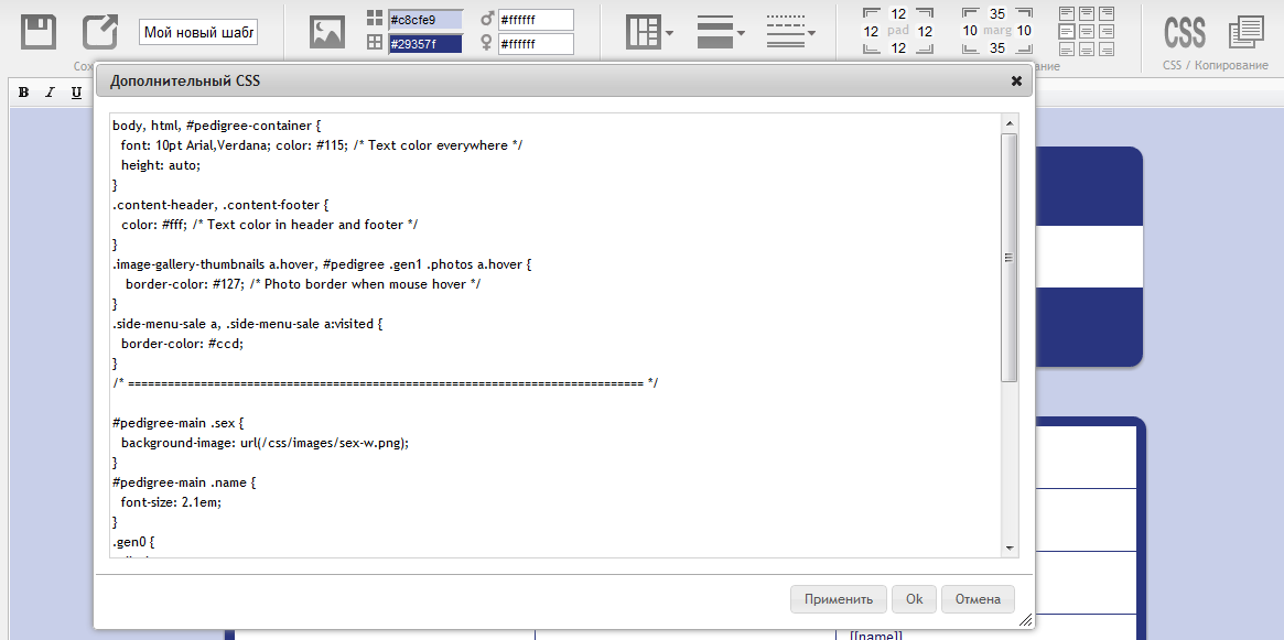 Подготовительный этап закончен. Далее начнем разбирать CSS. На работе в Photoshop я останавливаться не буду - она никак не специализируется под технологию CreatePedigree.